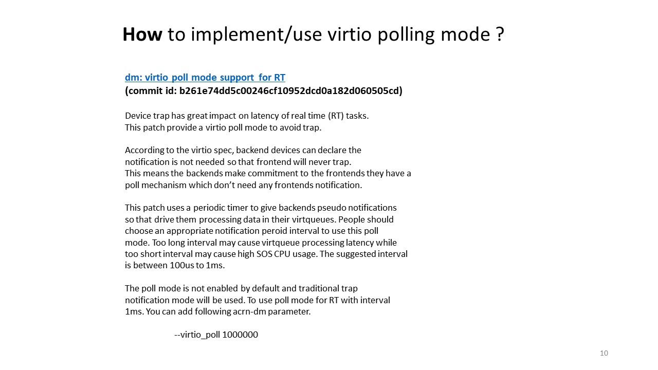 Virtio Polling Mode and Its Advantage for Real Time Virtual Machine