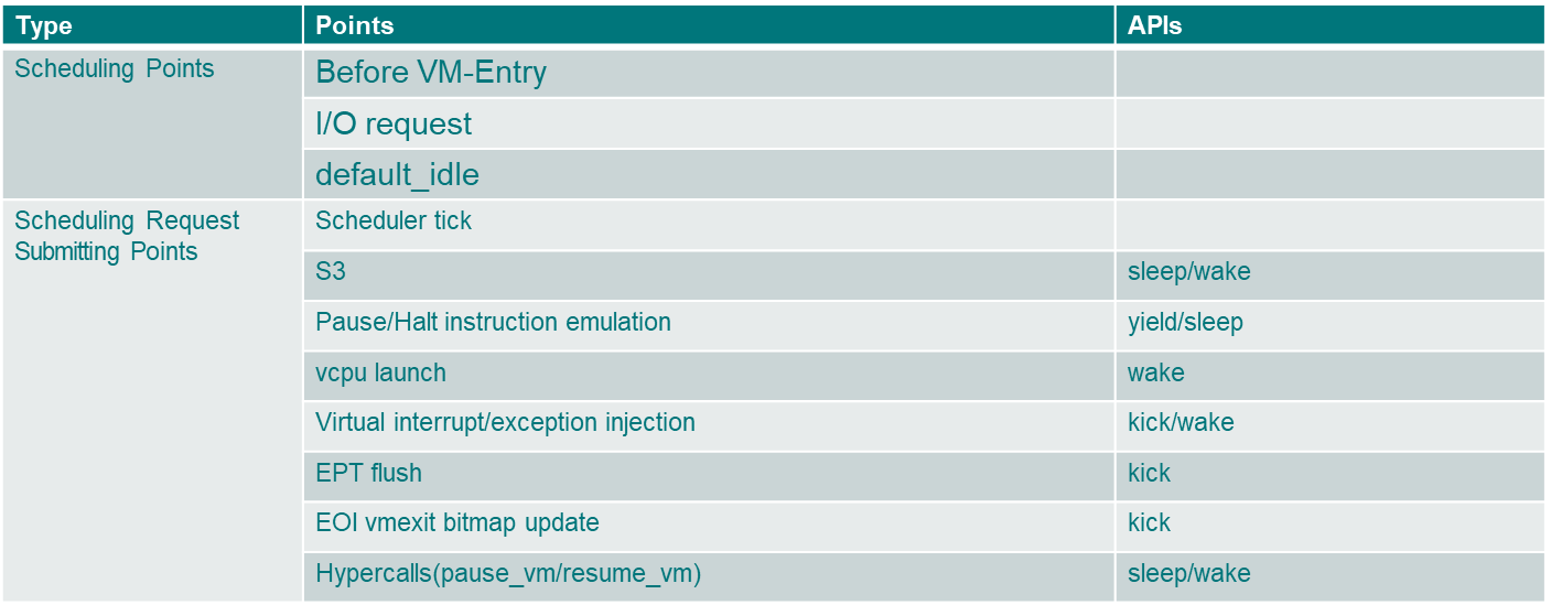 - Follow the principle of modularity and Decoupling vCPU layer and specific scheduling algorithms