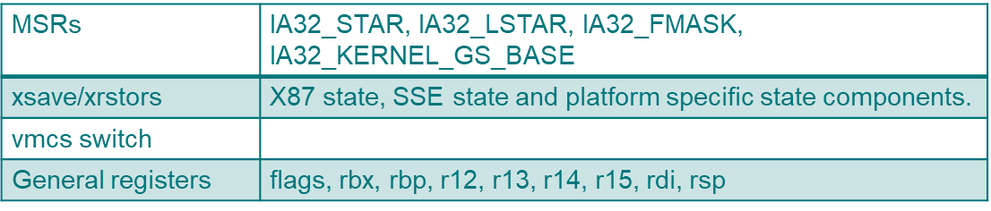 The vCPU layer will register two function switch_in and switch_out for platform architecture level context switch handling.